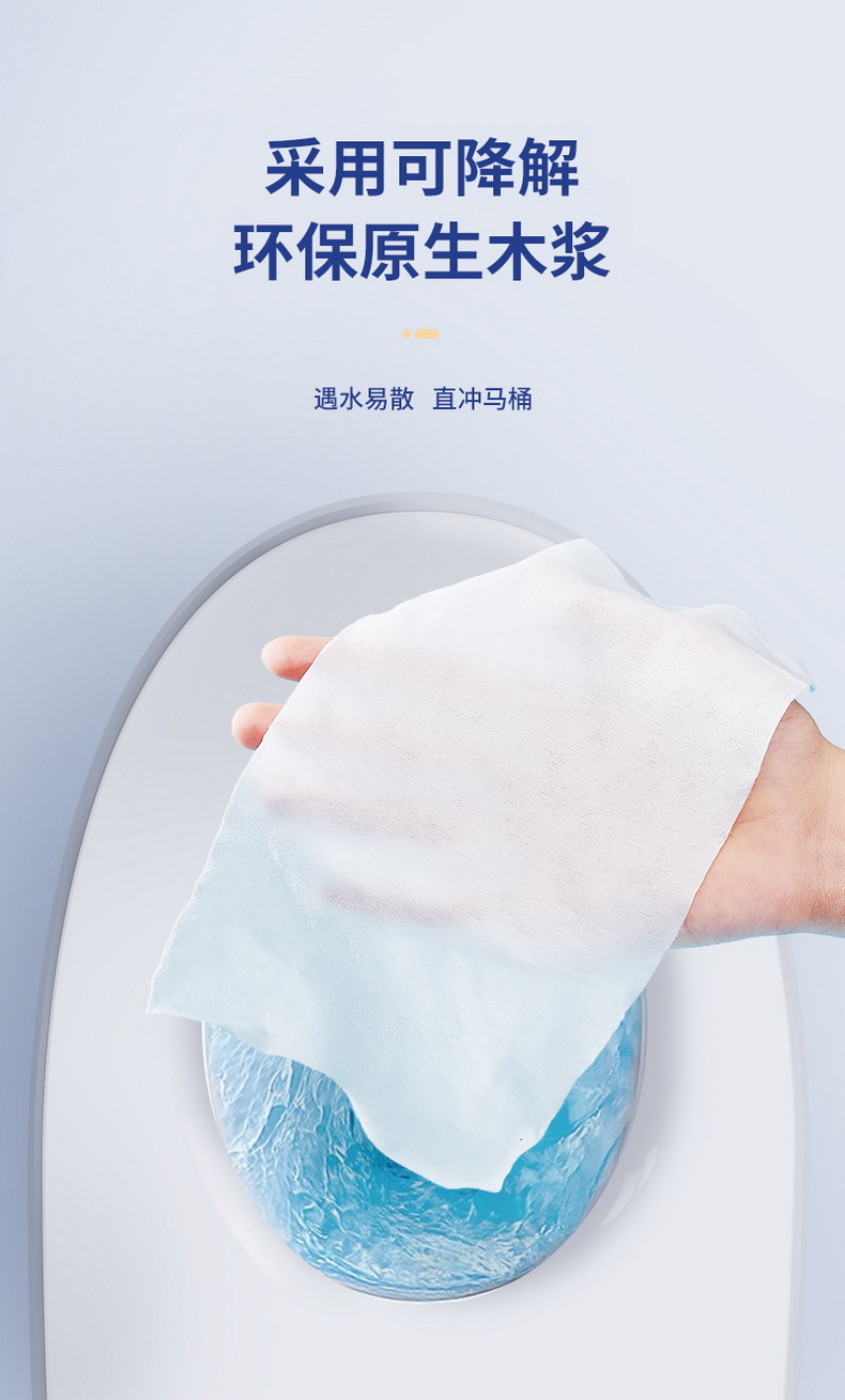 首先,目前市面上出售的湿厕纸,包括这款母婴配方的子初湿厕纸,都存在一个共同点:选取的原料是可降解原生木浆。这样的湿厕纸有个好处就是遇水很容易就散开,可以直冲马桶~