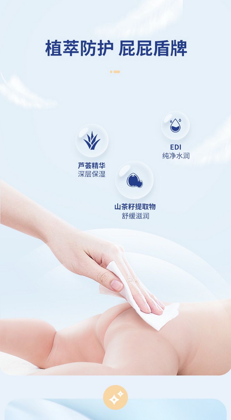 其次,50%的普通湿厕纸都有添加有芦荟精华,拭擦一下,可以渗透PP肌肤,达到保湿的效果。不过,子初湿厕纸更让人惊喜的是,不仅含芦荟精华,还含有山茶籽提取物。这样的植萃双防护,能成为宝宝PP的坚强护盾,还能让妈妈瞬间开启舒缓滋润私密肌肤的新模式。ohmygod!体验感真的一级棒!