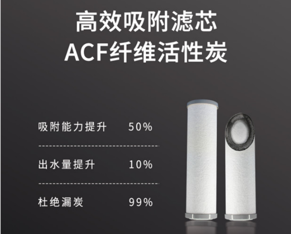 法兰尼FLN-400G-X4采用了特有的ACF纤维活性炭滤芯,由法兰尼经过多重实验,经过一道道复杂工艺制成。较于普通活性炭滤芯,吸附能力提升50%,过水量提升10%,并且将出黑水的概率降低至1%,极大程度保证了水质的鲜纯。另外该活性炭滤芯具备孔径密集、亲水性好、出水量大、杜绝炭漏等多种优势,能够高效吸附水中的余氯、消毒副产物等有害物质,还原水质清甜。