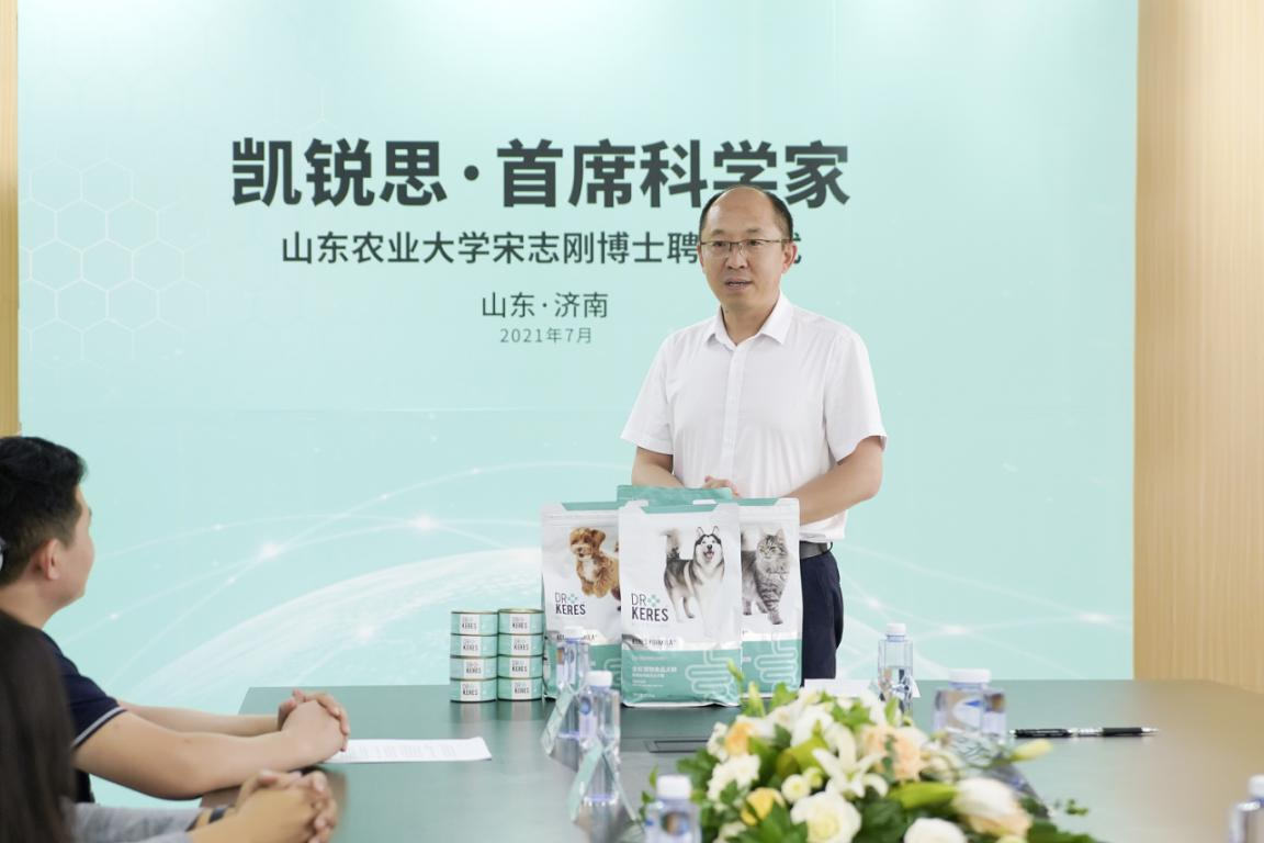 如何提供品牌实力,凯锐思从产品研发入手。为了研发出更科学的宠粮新配方,2021年7月,凯锐思聘任山东农业大学宋志刚博士为首席科学家,并联合山东省农科院畜牧兽医研究所,开启了宠粮研发的新征程。