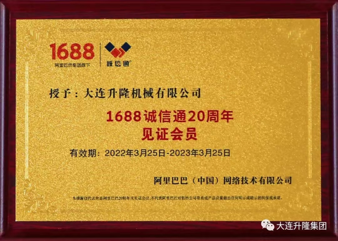 2002年3月1688为从事中国国内贸易的卖家和买家推出了“诚信通”服务。2022年3月,恰逢1688诚信通20周年之际,大连升隆集团-大连升隆机械有限公司正式加入1688平台并成为见证会员!