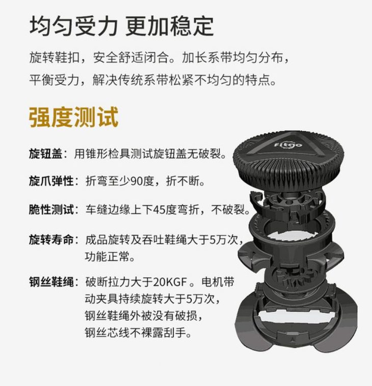 基于鞋带的痛点,在鸿鹄2.0研发阶段,同时对快速穿脱的系统进行了性能升级: