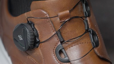 快扣系统为封闭式的自紧循环系统,通过机械旋钮固定松紧,并且系统位于鞋面,没有任何的外接口,能够轻而易举的解决上述问题!