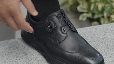 在研发鸿鹄阶段,我们就将快速穿脱系统作为运动商务皮鞋的核心卖点。因为普通鞋带总会在你想收紧时,出现脚背特别紧,脚掌前方却很松弛的情况,总是需要不断的拉扯调节,才能达到满意舒适的松紧度;即便将鞋带系牢,也会经常出现松脱的情况,每次调整都需要解开,再重新系一次,非常浪费时间和影响心情。